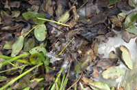 癥狀:病害多在花生成株期發(fā)生,主要為害莖部、果柄及莢果。發(fā)病初期病部變褐軟腐,其上出現(xiàn)波紋狀病斑。病斑表面長(zhǎng)出一層白色絹狀絲菌絲體,在合適條件下菌絲蔓延至植株中下部莖桿,并在分枝間、植株間蔓延。土壤潮濕隱蔽時(shí),病株周圍土表植物殘?bào)w和有機(jī)質(zhì)上也布滿一層白色菌絲體。在菌絲體中形成很多球狀菌核。受害莖基部組織腐爛,皮層脫落,剩下纖維狀組織。病株葉片變黃,邊緣焦枯,最后枯萎而死,受侵害果柄和莢果長(zhǎng)出很多白色菌絲,呈濕腐狀腐爛。
