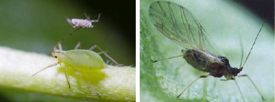 左圖為無翅蚜,右圖為有翅蚜
