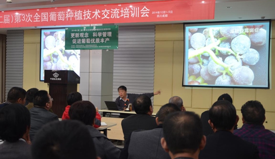 2014年12月1日—5日,由中國農(nóng)學會葡萄分會、中國果品流通協(xié)會葡萄分會主辦,中國農(nóng)藥發(fā)展與應用協(xié)會植物生長調(diào)節(jié)劑專業(yè)委員會、國光承辦的2014年(第二屆)第三次全國葡萄種植技術交流培訓會在國光召開,來自安徽、湖北、四川、山西、江蘇等地的200余名葡萄種植戶參加了會議。