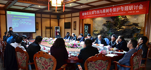 2016年12月3日,由中國(guó)農(nóng)藥發(fā)展與應(yīng)用協(xié)會(huì)植物生長(zhǎng)調(diào)節(jié)劑專業(yè)委員會(huì)主辦,國(guó)光股份承辦的“植物生長(zhǎng)調(diào)節(jié)劑新應(yīng)用、果樹(shù)冬保護(hù)專題研討會(huì)”在四川成都召開(kāi)。全國(guó)農(nóng)業(yè)技術(shù)推廣服務(wù)中心農(nóng)藥與藥械處處長(zhǎng)王鳳樂(lè)、中國(guó)農(nóng)藥發(fā)展與應(yīng)用協(xié)會(huì)副秘書(shū)長(zhǎng)花榮軍、全國(guó)農(nóng)業(yè)技術(shù)推廣服務(wù)中心防治處高級(jí)農(nóng)藝師李萍、中國(guó)農(nóng)藥發(fā)展與應(yīng)用協(xié)會(huì)植物生長(zhǎng)調(diào)節(jié)劑專業(yè)委員會(huì)主任胡興啟、中國(guó)農(nóng)業(yè)大學(xué)農(nóng)學(xué)院教授、長(zhǎng)江學(xué)者、植物生長(zhǎng)調(diào)節(jié)劑專家段留生以及四川、河南、山東、江蘇、陜西、福建、湖南、湖北、廣西等省的省植保站站長(zhǎng)、省農(nóng)業(yè)科學(xué)院、林業(yè)科學(xué)院的研究員、教授等17人參加研討。