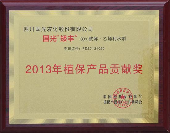 近日,由中國植物保護(hù)學(xué)會(huì)植保產(chǎn)品推廣專業(yè)委員會(huì)主辦的“2013年植保產(chǎn)品貢獻(xiàn)獎(jiǎng)”評選活動(dòng)落下帷幕。經(jīng)來自農(nóng)業(yè)部農(nóng)藥檢定所、全國農(nóng)技推廣中心、中國農(nóng)業(yè)科學(xué)院植保所以及地方植保系統(tǒng)的22位專家評審,國光矮豐30%胺鮮·乙烯利水劑獲2013年植保產(chǎn)品貢獻(xiàn)獎(jiǎng)。