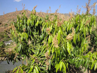修剪不到位導(dǎo)致枝梢老化程度不夠,開(kāi)花結(jié)果差 修剪不到位導(dǎo)致枝梢過(guò)長(zhǎng)、樹型差、產(chǎn)量低、大小年嚴(yán)重早中熟芒果(海南、廣西)結(jié)果母枝培養(yǎng)一般都一般控制在兩蓬梢。在生產(chǎn)中借助土埋多效唑和葉面控梢的處理基本能實(shí)現(xiàn),如果出現(xiàn)沖梢,即可以藥物方式處理。中晚熟芒果由于一般沒(méi)有進(jìn)行控梢處理,所以抽梢比較不統(tǒng)一,梢體一般在前一蓬梢老熟半月左右后又自然抽出一蓬,平均抽梢4-5蓬,甚至有6蓬以及以上的抽梢情況。在中晚熟芒果產(chǎn)區(qū)見(jiàn)到的長(zhǎng)梢樹體則因?yàn)榇恕?/span>